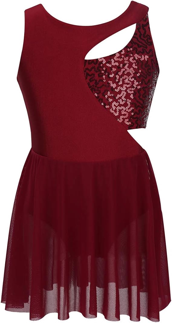 Freebily Kinder Madchen Eiskunstlauf Kleid Armellos Glanzend Pailletten Rollschuhkleid Ballettkleid Tanzbody Ballett Body Trikot Overall Sport Freizeit Tanzsport