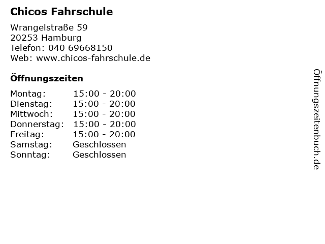 Chicos Fahrschule Offnungszeiten In Hamburg Hoheluft West Wrangelstr 59 Findeoffen Deutschland