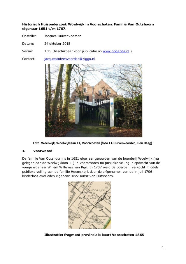 Historisch Huisonderzoek Woelwijk In Voorschoten Familie Van Outshoo